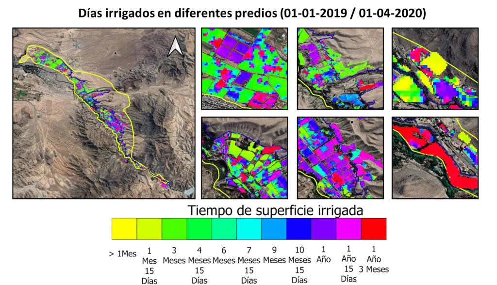 Cambio en la superficie irrigada en diferentes predios del norte de Chile (NDWI)